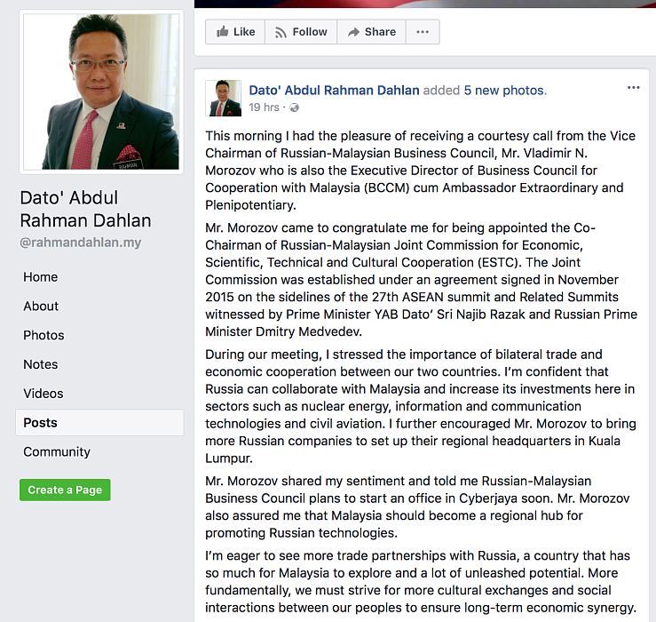 Встреча с Сопредседателем российско-малайзийской межправкомиссии по экономическому, научному и культурному сотрудничеству.